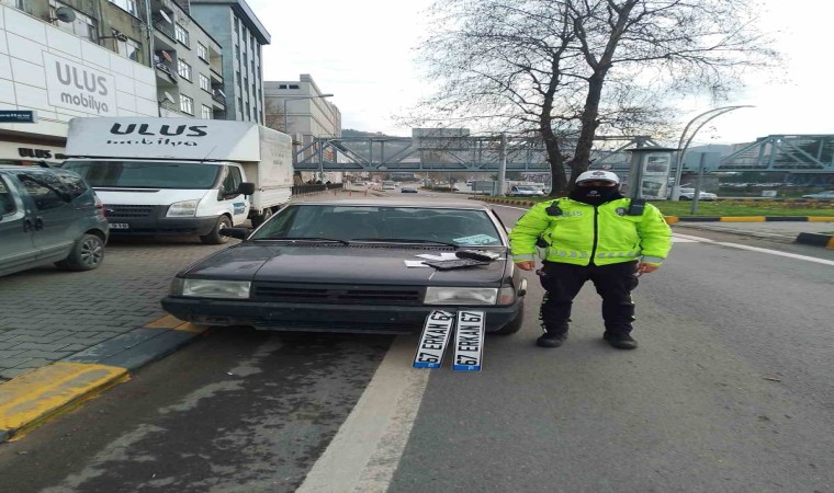 Edinilen bilgiye göre Zonguldak Emniyet Müdürlüğü trafik ekipleri Bülent Ecevit Caddesi üzerinde plakadan şüphe duyarak durdurduğu 67 ERKAN 67 sahte plakalı Tofaş marka aracı denetledi. Sürücü R.T. (29) ile araç sahibi U.A. (29) Resmi belgede sahtecilik, sahte plakalı araç kullanmak suçundan adli işlem yapılmak üzere Karaelmas Polis Merkezi Amirliği’ne sevk edildi. Aracın trafik idari yönden yapılan incelemesi sonucunda araca sahte plaka takarak trafiğe çıkmak, tescil edilen araçları tescil belgesi ve tescil plakası almadan karayoluna çıkarmak, sürücü belgesi geçici olarak yada tedbiren geri alındığı halde motorlu araç kullanmak ve kullandırmak suçlarından işlem yapıldı. Toplamda sürücüye 40 bin 746 lira cezai işlem uygulandı. Araç ise trafikten men edilerek çekici ile yediemin otoparkına çekildi.