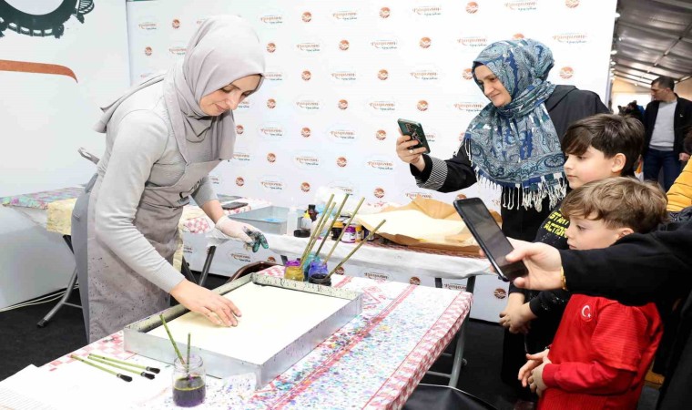 Sakarya Büyükşehir Belediyesi, 11 ayın sultanı Ramazan’a özel hazırladığı ve her sene geleneksel hale gelen Ramazan Sokağı’nda kültür sanat etkinliklerine devam ediyor. Ramazan’ın ikinci gününde de rengarenk görüntülere sahne olan sokakta geleneksel İslam-Türk sanatı olan Ebrû yapıldı, vatandaşlar adeta görsel bir şölen yaşadı. Usta ellerin hazırladığı ebru eserlerini inceleyen vatandaşlar, ellerine fırçaları alıp kitre maddesi döktü, toprak boyaları karıştırdı ve fırçalarla farklı eserler ortaya çıkardı.