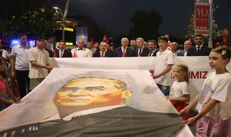 Sakarya’da 30 Ağustos Zafer Bayramı’nın 101’inci yıl dönümü çerçevesinde 100 metre uzunluğunda Türk bayraklı fener alayı düzenlendi.