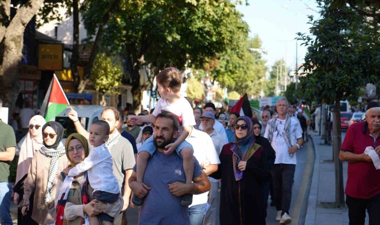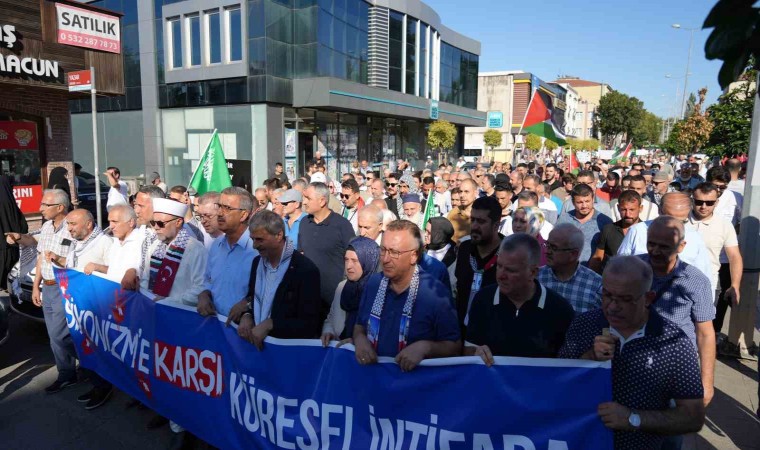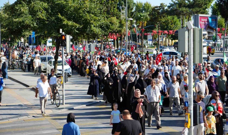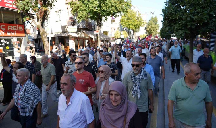 Sakarya’da düzenlenen ‘Gazze’nin Sesi, İsmail Haniye’nin Vasiyeti’ yürüyüşünde binlerce kişi İsrail’i kınadı.