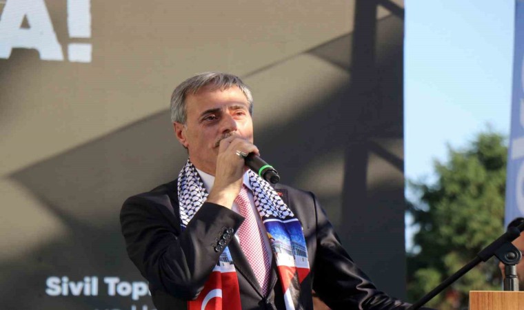 Tekbirlere, dualara ve Filistin karşıtı sloganlara eşlik eden Sakarya Büyükşehir Belediye Başkanı Yusuf Alemdar, tüm Sakarya’yı zulme karşı tek vücut olmaya davet etti. Siyonist rejimin vicdanlarının taşlaşmış olduğunu ifade eden Alemdar, 7 Ekim’den bu yana dünyanın gözü önünde katledilen binlerce mazlumu hatırlattı. Başkan Alemdar, “Görmeye hiçbir kalbin dayanamayacağı görüntülere, duymaya hiçbir kulağın dayanamayacağı haberlere şahitlik ediyoruz. 7 Ekim’den bu yana Gazze’de yaşananlara savaş demeyi reddediyoruz, çünkü bu tam anlamıyla bir soykırımdır. Kalpleri taşlaşmış, vicdanları erimiş barbar katiller, kardeşlerimize dönük yaklaşık 8 aydır bir soykırım gerçekleştiriyorlar. Bugüne değin 15 bini çocuk, 36 bin Filistinli kardeşimiz öldürüldü. 81 bin kardeşimiz yaralandı. 2 milyondan fazla insan göçe zorlandı. Ve bu katliamlar bütün dünyanın gözleri önünde canlı canlı yaşandı” dedi.
