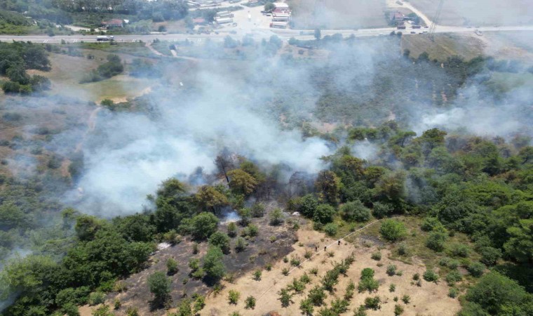 Sakarya’nın Akyazı ilçesinde 10 hektarlık alanda çıkan yangın dron ile havadan görüntülendi. Helikopterin de havadan destek sağladığı yangın kontrol altına alınarak söndürüldü.