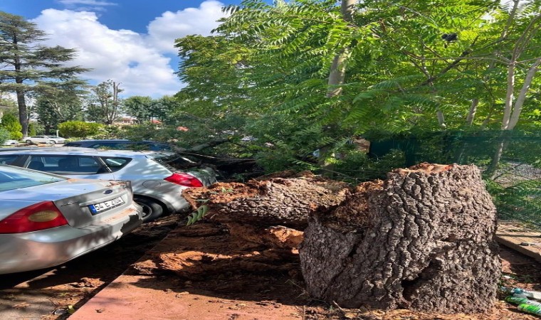Sakarya’nın Adapazarı ilçesinde çürüyen ağacın devrilmesi neticesinde 4 araç hasar gördü.