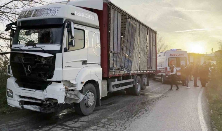 Kaza, Büyük Kaynarca Mahallesi mevkiinde meydana geldi. Edinilen bilgiye göre, plakası öğrenilemeyen C.B. kontrolündeki kamyon ile Üzeyir Kontaş (38) idaresindeki 54 BC 649 plakalı Opel marka otomobil çarpıştı. Haber verilmesi üzerine bölgeye itfaiye, sağlık ve jandarma ekipleri sevk edildi. Ekipler, hurdaya dönen otomobil içerisinde sıkışarak ağır yaralanan sürücü Üzeyir Kontaş ile annesi Güllü Kontaş’ı (76) kurtarmak için çalışma başlattı. İtfaiye ekiplerince yapılan çalışma neticesinde yaralılar, sıkıştıkları yerden kurtarılarak sağlık ekiplerine teslim edildi.