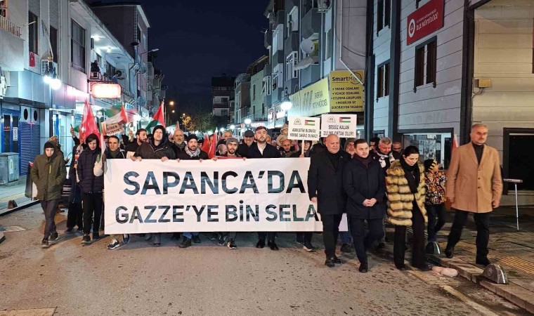 Sapanca Filistin Dayanışma Platformu’nun organizesinde Kuva-i Milliye Parkı’ndan başlayıp Şehit Albay Güner Ekici Parkı’nda sona eren yürüyüşe yoğun katılım oldu. Platform adına konuşan emekli imam hatip Abdurrahman Yılmaz, "Katil İsrail’in 7 Ekim 2023 tarihinden bu yana başta Gazze Şeridi olmak üzere Filistin’de masum sivillere yönelik gerçekleştirmiş olduğu saldırılar, eşi benzeri görülmemiş bir insani felakete yol açmıştır. Katil İsrail yönetiminin tüm tepkilere rağmen Filistin halkına yönelik sistematik bir şekilde devam eden ağır ve insanlık dışı saldırıları, sivillere yönelik toplu cezalandırma, geniş çapta yıkım ve yerinden etme politikaları açıkça soykırım ve insanlığa karşı suçların bir göstergesidir" dedi.