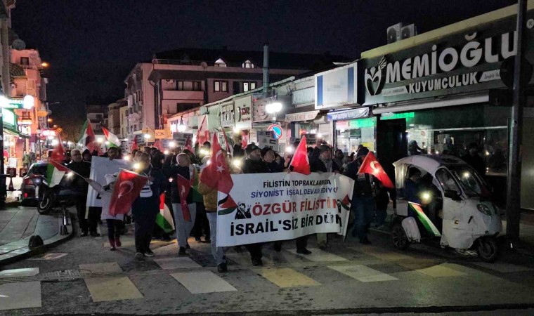 Sakarya’nın Sapanca ilçesinde Filistin’e destek yürüyüşü düzenlendi.
