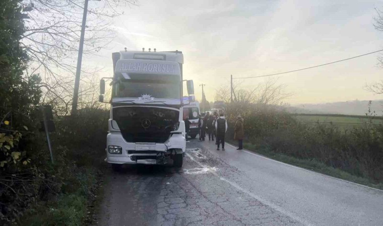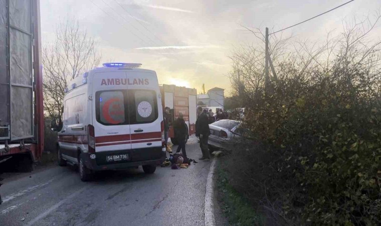 Kaza, Büyük Kaynarca Mahallesi mevkiinde meydana geldi. Edinilen bilgiye göre, plakası öğrenilemeyen C.B. kontrolündeki kamyon ile Ü.K. idaresindeki 54 BC 649 plakalı Opel marka otomobil çarpıştı. Kazanın haber verilmesi üzerine bölgeye itfaiye, sağlık ve jandarma ekipleri sevk edildi. Adrese ulaşan ekipler, çarpışmanın etkisi ile hurdaya dönen otomobil içerisinde sıkışarak ağır yaralanan Ü.K. ile G.K.’yı kurtarmak için çalışma başlattı. İtfaiye ekiplerince yapılan çalışma neticesinde yaralılar, sıkıştıkları yerden kurtarılarak sağlık ekiplerine teslim edildi.