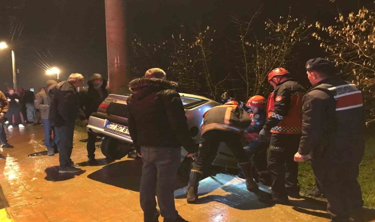 Kaza, Akyazı ilçesi Pazarköy Mahallesi’nde meydana geldi. Edinilen bilgiye göre, E.K. kontrolündeki 54 HP 842 plakalı otomobil, yağışında etkisi ile kayganlaşan yolda sürücüsünün direksiyon hakimiyetini kaybetmesi neticesinde kontrolden çıktı. Kaldırıma çıkan otomobil, beton elektrik direğine çarparak durabildi. Kazada araç içerisinde bulunan 6 kişiden 4’ü yaralandı. Durumun haber verilmesi üzerine bölgeye çok sayıda sağlık, itfaiye ve jandarma ekibi sevk edildi. Yaralılardan E.K., S.S. ve A.T. kendi imkanları ile araçtan çıkarken, E.S. ise sıkıştı. Bölgeye ulaşan itfaiye ekiplerinin çalışması neticesinde yaralı E.S., sıkıştığı yerden kurtarıldı. Olay yerinde ilk müdahaleleri yapılan yaralılar, Akyazı Devlet Hastanesi’ne kaldırılarak tedavi altına alındı.