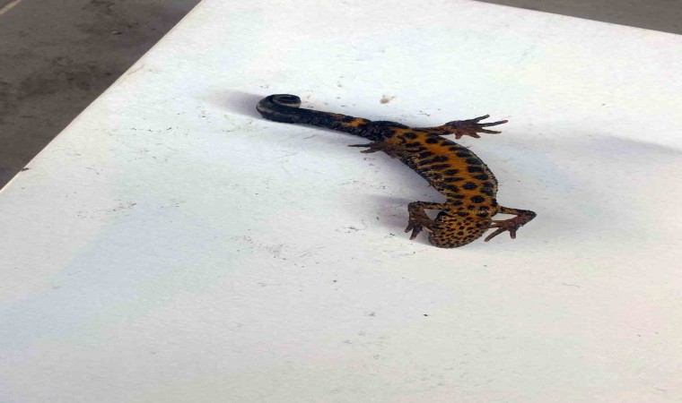 Sakarya’nın Taraklı ilçesinde nesli tükenmekte olan pürtüklü semender görüldü.