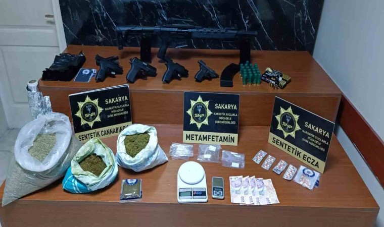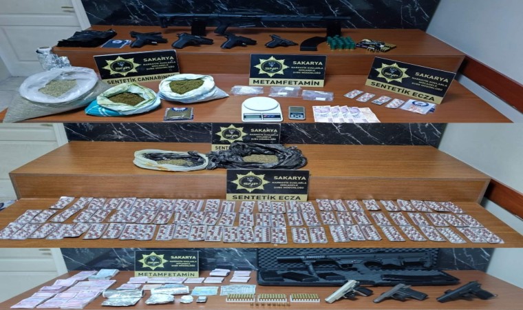 Sakarya Cumhuriyet Başsavcılığının koordinesinde, Sakarya İl Emniyet Müdürlüğün ekipleri şehirde uyuşturucu madde ticareti ve kullanımının engellenmesine yönelik çalışmalarına devam ediyor. Bu çerçevede ekipler Erenler ve Adapazarı ilçelerinde 4 ayrı operasyon gerçekleştirdi. 12 şüphelinin yakalanarak gözaltına alındığı operasyonlarda şahısların yapılan üst, araç ve ikamet aramalarında; 5 kilo 490 gram sentetik cannabinoid maddesi, bin 1183 adet ecza ilacı, 50 adet uyuşturucu madde satmak için kullanılan poşet ve alüminyum folyo, 31 gram metamfetamin maddesi, 4 adet hassas terazi, 7 adet ruhsatsız tabanca, 3 adet ruhsatsız tüfek, 211 adet fişek, 21 adet kartuş, 12 adet şarjör ve uyuşturucu madde ticaretinden elde edilen 183 bin 900 TL, 900 Dolar ile 55 Euro ele geçirildi.