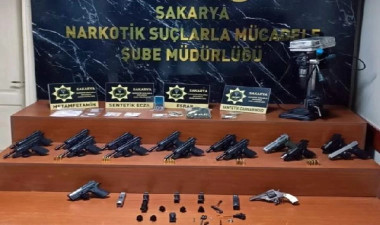 Sakarya Emniyet Müdürlüğü Narkotik Suçlarla Mücadele Şube Müdürlüğü ekipleri, silah kaçakçılığı ve uyuşturucu madde ticareti yaptığı tespit edilen şüphelilere yönelik eş zamanlı operasyon düzenledi. Adapazarı, Arifiye, Erenler ve Serdivan ilçelerinde belirlenen adreslere yapılan baskınlarda 7 ruhsatsız tabanca, 11 kurusıkı tabanca, 1 namlu yapımında kullanılan presli matkap, nişan tertibatına takılan 10 lazer, 29 mermi, tabanca tamiri ve yapımında kullanılan aparatlar ile 92 gram esrar, 70 gram metamfetamin, 9 sentetik hap, 2,5 gram sentetik kannabinoid maddesi ve 1 hassas terazi ele geçirildi. Olayla ilgili 4 şüpheli gözaltına alındı. Operasyonla ilgili soruşturma sürüyor. (DHA)