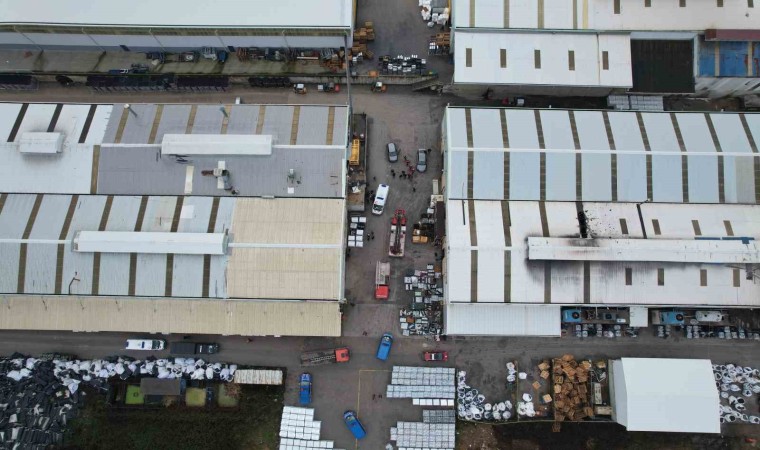 Jandarma ekipleri olaya ilişkin inceleme başlatırken, yangının çıktığı fabrika havadan görüntülendi.