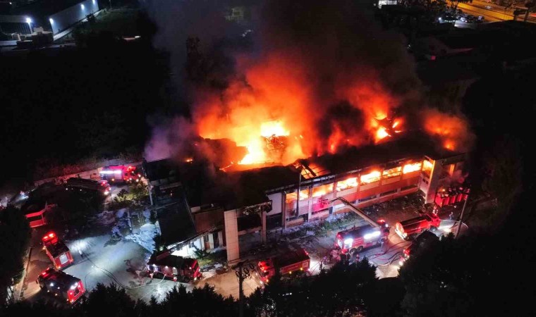 Sakarya’nın Arifiye ilçesinde bulunan kozmetik fabrikasında çıkan yangın havadan dron ile görüntülendi. Alevlerin adeta geceyi aydınlattığı, dumanların ise gökyüzünü kapladığı yangına müdahale sürüyor.