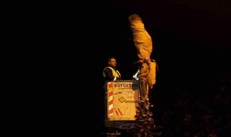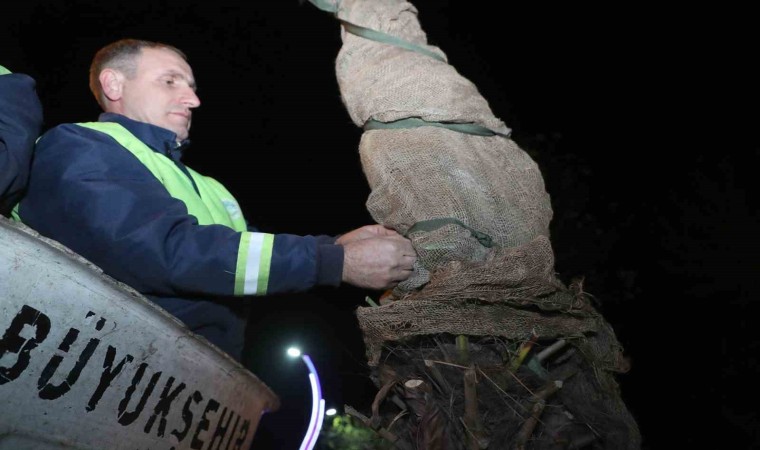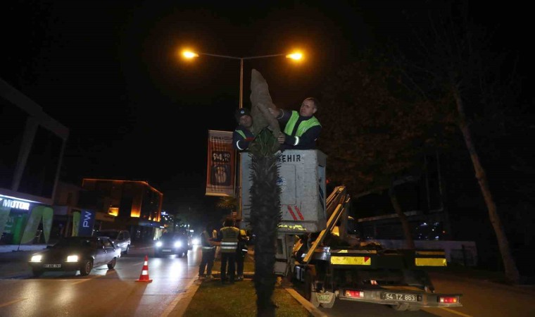 Sakarya Büyükşehir Belediyesi, şehir merkezinin süsü olan palmiye ağaçlarını kış mevsiminin dondurucu soğuklarından için üzerlerini tek tek kapatarak koruyor.