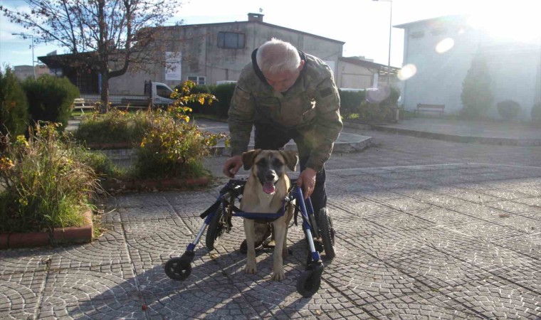 Ordu’da bir oto tamircisi, minibüsün çarpması sonucu omurgası kırılan ve arka bacakları tutmayan köpeğini, yaptırdığı 4 tekerlekli yürüteç ile yeniden hayata bağladı.
