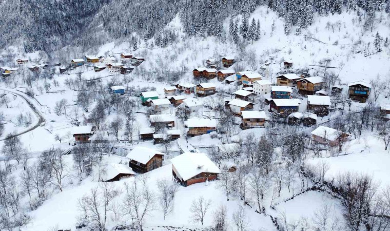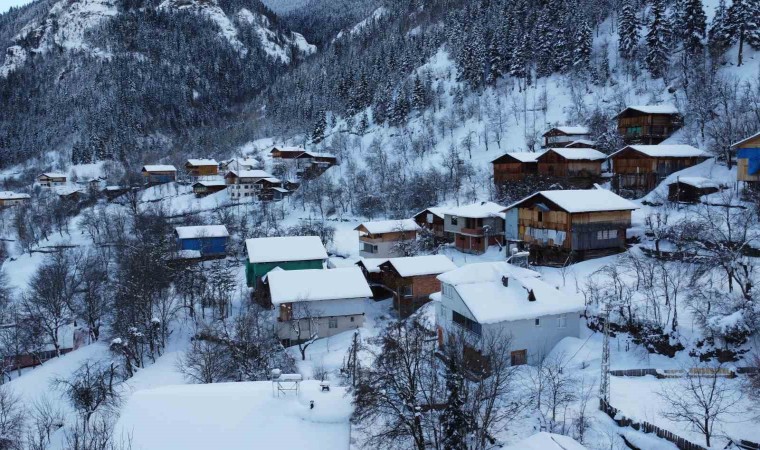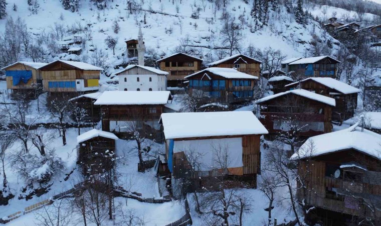 Beyaz örtüyle eşsiz güzelliğe bürünen köyün tüm güzelliği sosyal medya içerik üreticisi Onur Ekin tarafından havadan görüntülendi.