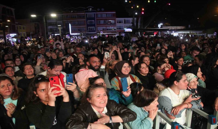 Konserde Perşembe Belediye Başkanı Cihat Albayrak, ünlü sanatçıya çiçek takdim etti.