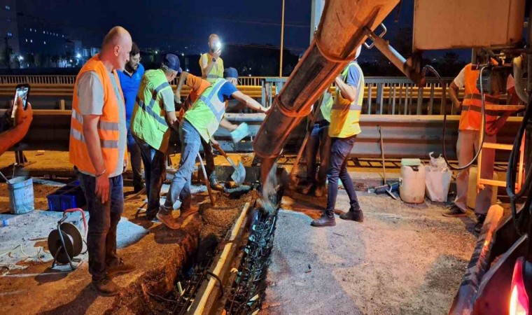 Sakıp Sabancı Köprüsü’nün ayak noktalarında genleşme ve derz yenileme çalışması yapılarak, güçlendiriliyor.