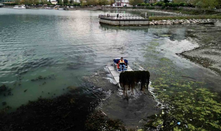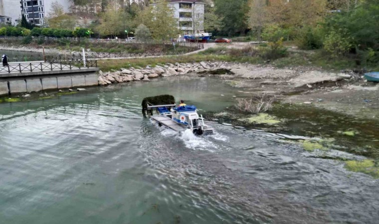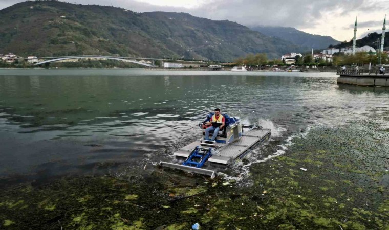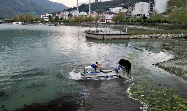 Samsun’un önemli turizm merkezinden ’Saklı Cennet’ Ayvacık ilçesinde baraj gölü yüzeyinde oluşan yosunlar, Büyükşehir Belediyesi tarafından yosun toplama aracıyla temizlendi.
