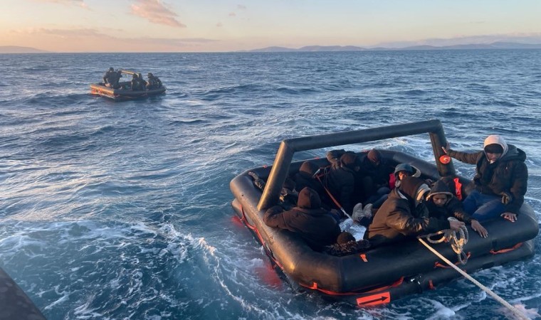 İzmir’in Karaburun ve Seferihisar ilçesi açıklarında, Yunanistan unsurları tarafından Türk kara sularına geri itilen can salları ve lastik bot içerisinde bulunan toplam 96 düzensiz göçmen kurtarıldı.