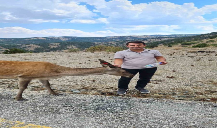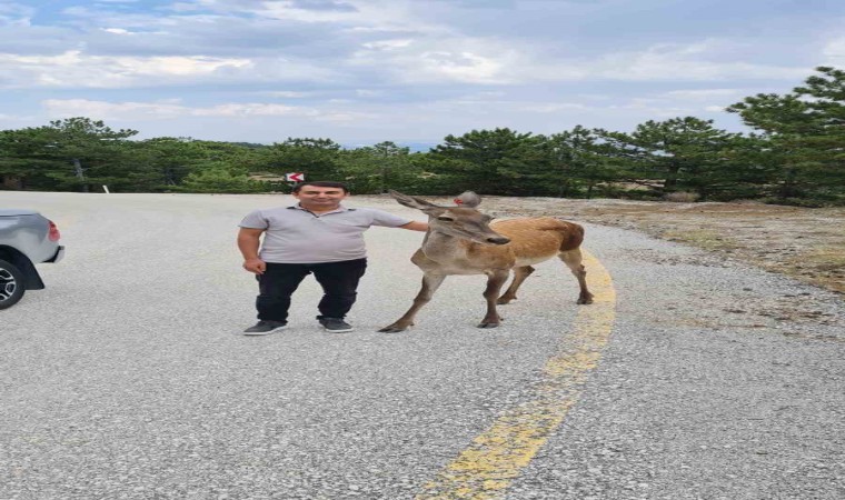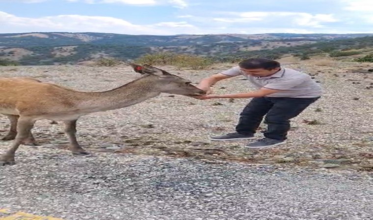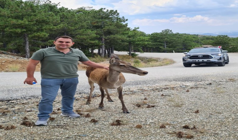 Geçtiğimiz günlerde Eşeler Yaylası’ndan geçerken anne geyik ve yavrusuna rastlayan Burdur Orman İşletme Müdürü Sefa Karataş ve Orman İşletme Müdürlüğü personeli o anları cep telefonu kamerası ile görüntüledi. Görüntülerde yola inen anne geyik Orman İşletme Müdürü Sefa Karataş’ın elinden su içip kendini sevdirirken yavru kızıl geyiğin de ormanın içinden onları dikkatle izlediği görüldü. Sefa Karataş’ın elinden su içtikten sonra yavrusunun yanına doğru ilerleyen anne kızıl geyik çıkardığı seslerle adeta müdüre teşekkür etti.