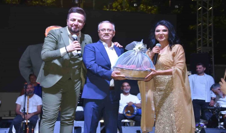 Deniz Toprak’a ise verdiği muhteşem konserden dolayı teşekkür eden Belediye Başkan Yardımcıları Mahmut Süreyya Karaoğlu ve Serkan Sözer, çiçek ve şeftali sepeti takdim etti.