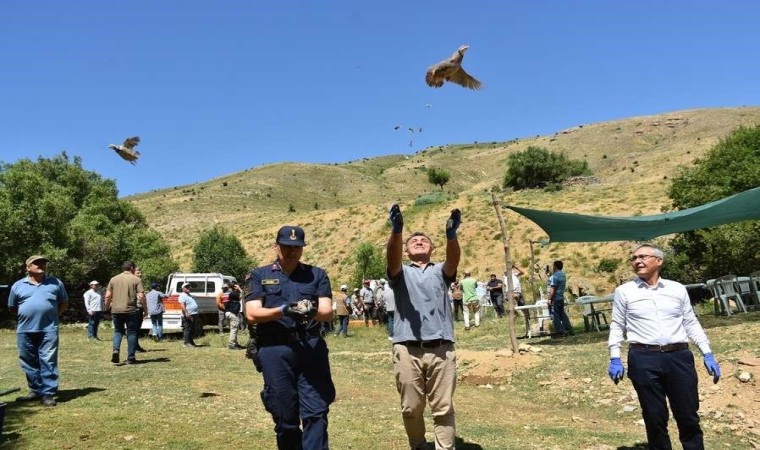 Çekirgelerle biyolojik mücadele başlatan Manisa İl Tarım ve Orman Müdürlüğü tarafından Salihli’nin Burhan Mahallesi’nde 450 keklik doğaya bırakıldı.