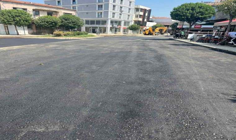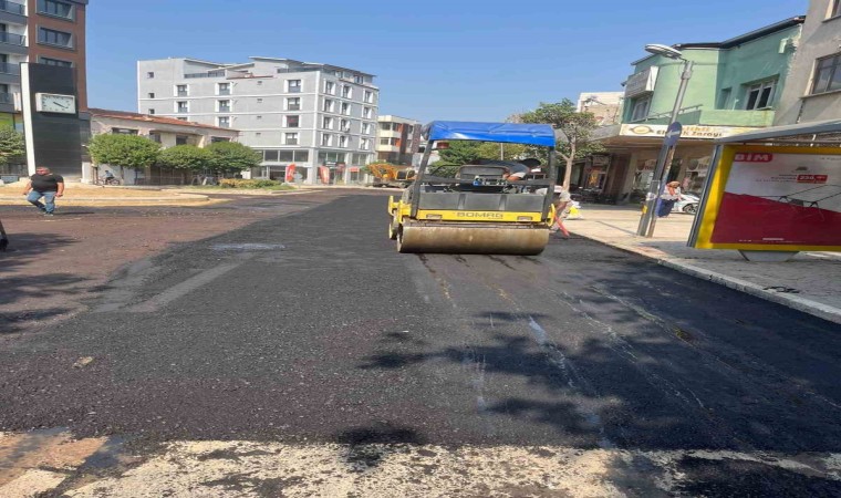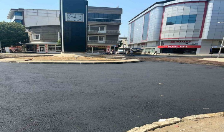 Salihli Belediyesi ekipleri, Yıldız Meydanı çevresinde kavşak düzenleme çalışmaları yaparak yollara sıcak asfalt attı.