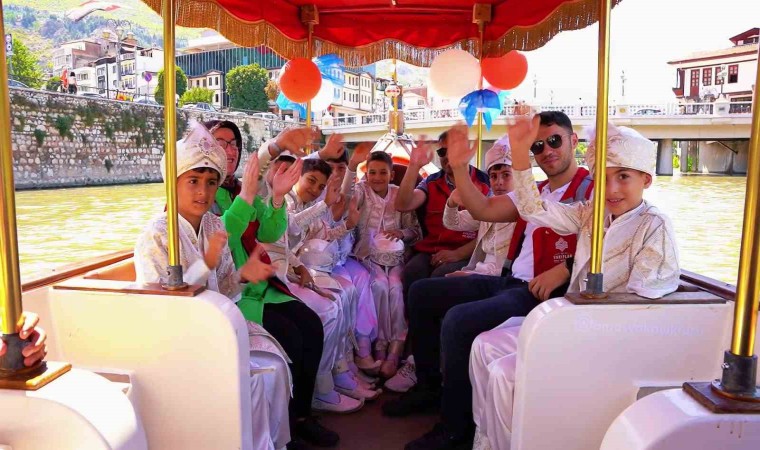 Otelde sünnet yemeği yiyen çocuklar, süslenen saltanat kayıklarına binerek Yeşilırmak nehrinin üstünde tur atıp keyif sürdü. Belediye bandosunun seslendirdiği marşlar eşliğinde üstü açık otobüsle şehri dolaşan çocuklar coşku dolu günün anısına tarihi mekanlarda fotoğraf çektirdi.
