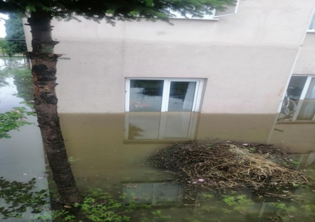 DÜNDEN BU YANA ETKİLİ OLAN SAĞANAK YAĞIŞ YÜZÜNDEN SALTUKOVA BELDESİNDE TOKİ KONUTLARINDA KALAN DEPREMZELERİN EVLERİ SULAR ALTINDA KALDI.