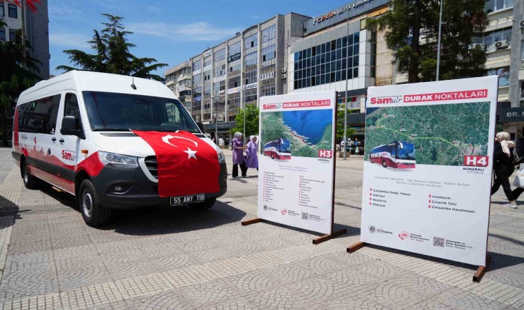 Samsun’da Çarşamba Havalimanı ile şehir merkezi ve ilçeler arasındaki ulaşım hizmetini verecek olan Samsun Büyükşehir Belediyesine bağlı SAMAİR araçları, güzergahlar ve seferler meydanda tanıtıldı.