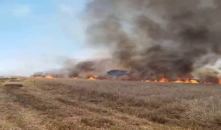 Adıyaman’da, meydana gelen anız yangını saman balyalarını küle çevirdi.