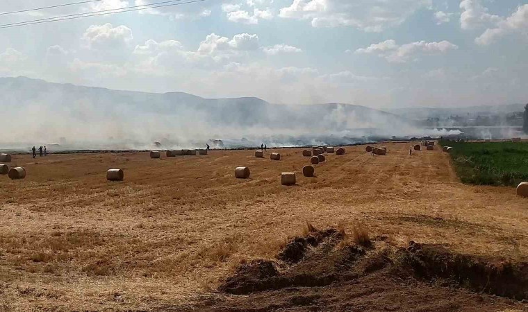 Sivas’ın Gemerek ilçesinde çıkan anız yangınında alevler arsında kalan birçok saman balyası yanarak kül oldu.