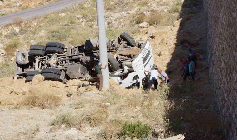 Karaman’ın Ermenek ilçesinde uçuruma yuvarlanan saman balyası yüklü kamyonun sürücüsü hayatını kaybetti.