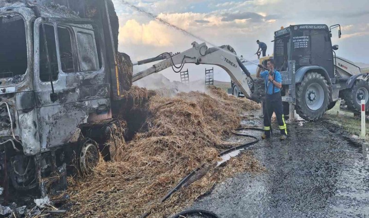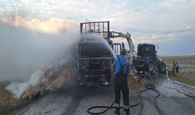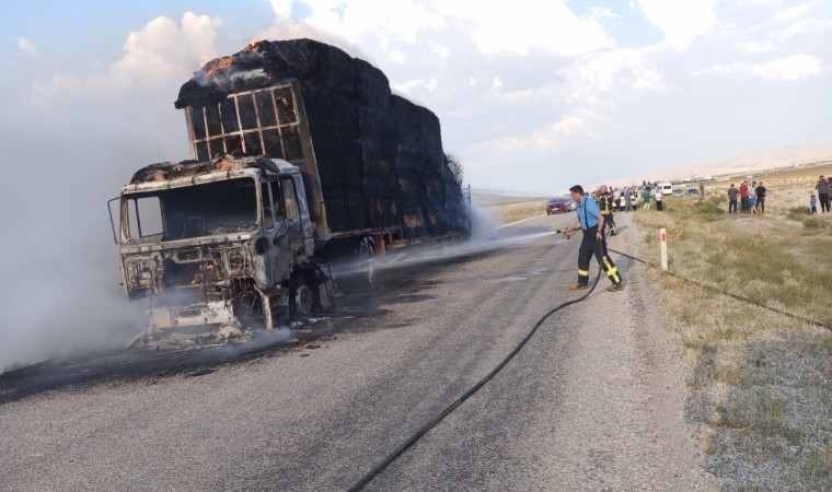 Karaman’da saman balyası yüklü tır seyir halindeyken alev aldı. Kısa sürede alevlere teslim olan tır tamamen yanarak kullanılamaz hale geldi.