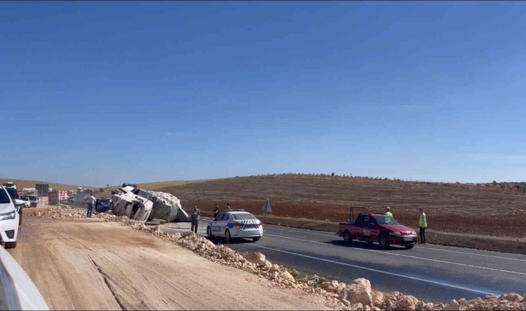 Edinilen bilgiye göre kaza, Şanlıurfa - Suruç karayolunun Payamlı kırsal Mahallesi yol ayrımı yakınlarında yaşandı. M.E.O.’nun kullandığı 47 AAE 793 plakalı tır, yapımı devam eden yolda ilerlerken kontrolden çıktı. Devrilen tırın sürücüsü yaralanırken içerisindeki saman balyaları ise yola savruldu.