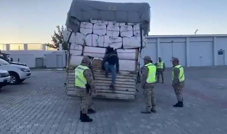 Van’ın Muradiye ilçesinde jandarma ekiplerince durdurulan saman balyası yüklü tırın dorsesindeki zulada 36 düzensiz göçmen yakalandı.