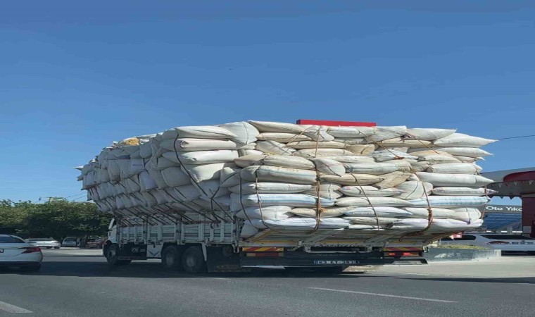 Diyarbakır’da aşırı yükü ve brandasız saman yüklü kamyon sürücüleri korkuttu. Trafiği tehlikeye atan kamyon, başka bir sürücü tarafından cep telefonu ile kaydedildi.