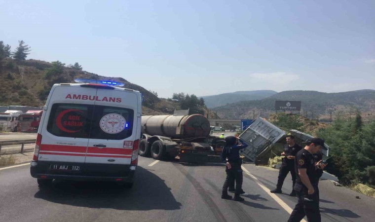 Bilecik’te saman yüklü tır ile kimyasal madde yüklü tankerin kafa kafaya çarpışması sonucu meydana gelen trafik kazasında 2 kişi yaralandı.