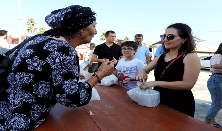 Hatay’ın Samandağ ilçesinde Kaymakam Mehmet Aksu, Koordinatör Kaymakam Alper Kırgıl ile birlikte vatandaşlara "hrisi" yemeği dağıttı.