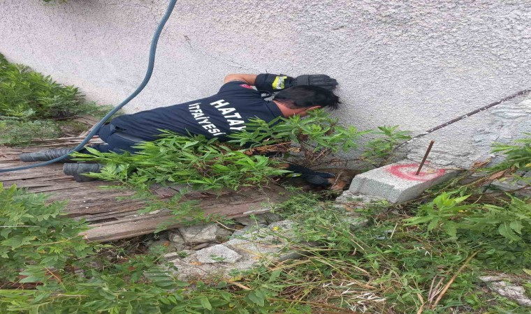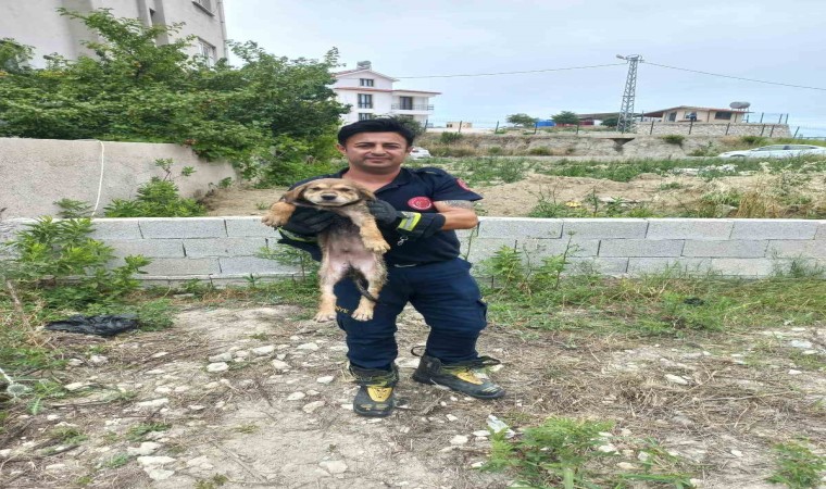 Hatay’ın Samandağ ilçesinde çukura düşen köpek itfaiye ekiplerinin müdahalesiyle kurtarıldı.