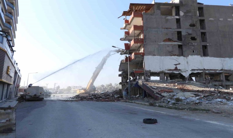 Samandağ ilçesinde depremlerde yıkılan ya da ağır hasarlı olduğu için yıkım kararı alınan binalarda enkaz kaldırma çalışmaları ekiplerce gerçekleştiriliyor. Yıkım işleminin yapılacağı alanlarda herhangi bir olumsuzluk yaşanmaması için güvenlik önlemi alan ekipler, yıkımın ardından çıkan molozları kamyonlarla enkaz döküm alanlarına götürüyor.