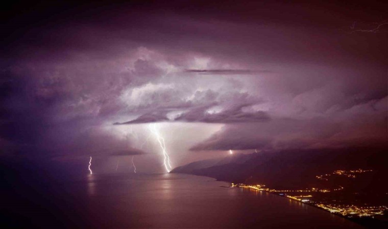 Hatay’ın Samandağ ilçesinde etkili olan şimşeklerden ötürü adeta görsel şölen oluştu. O anlar saniye saniye objektiflere yansıdı.