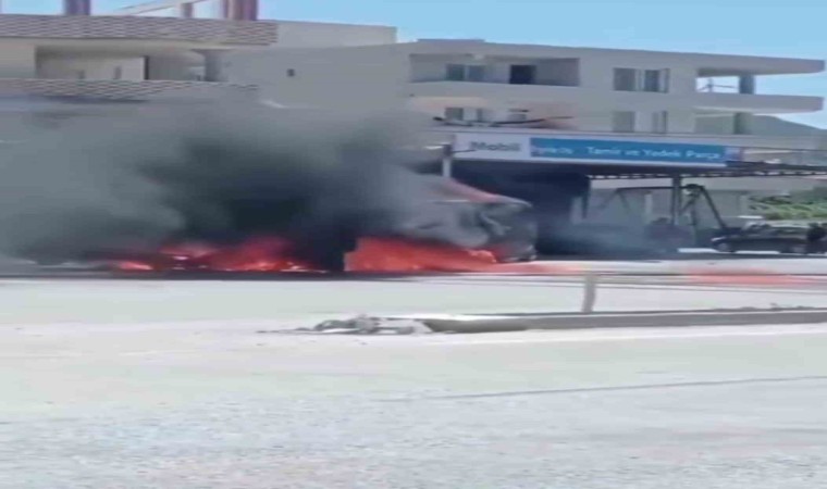Hatay’ın Samandağ ilçesinde park halindeki minibüste çıkan yangın, itfaiye ekiplerince söndürüldü.