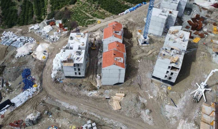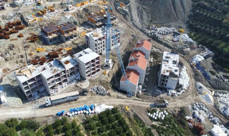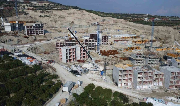 Depremin vurduğu Hatay’ın Samandağ ilçesinde Toplu Konut İdaresi Başkanlığı (TOKİ) tarafından inşa edilen 424 konut hızla yükseliyor.