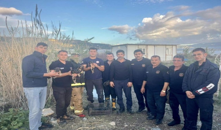 Hatay’ın Samandağ ilçesinde yağmur suyu giderinde mahsur kalan yavru köpekler, itfaiye tarafından kurtarıldı.