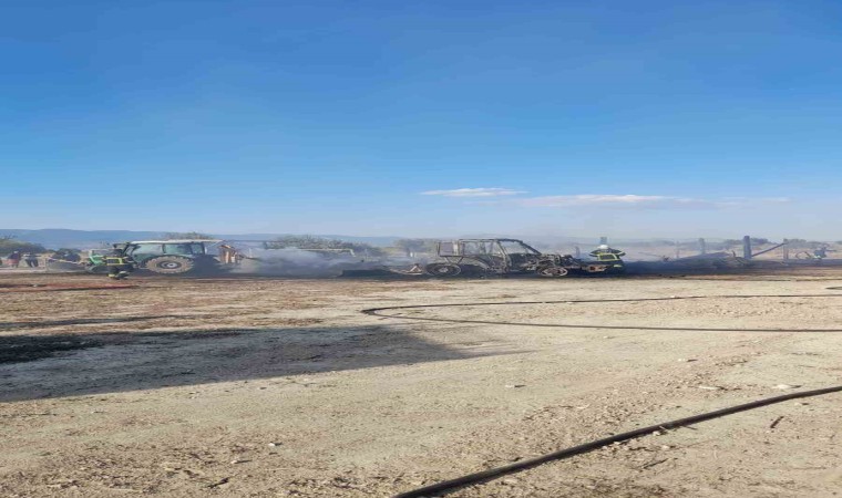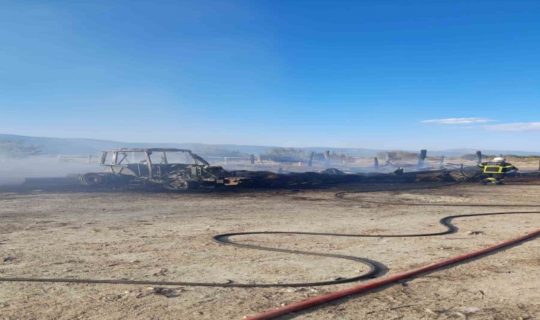 Yangında samanlıktan bulunan 20 saman balyası ve bir traktör küle dönerken, 1 köpek ve 1 kuzu yanarak telef oldu. Olayla ilgili jandarma ekipleri tarafından inceleme başlatıldı.