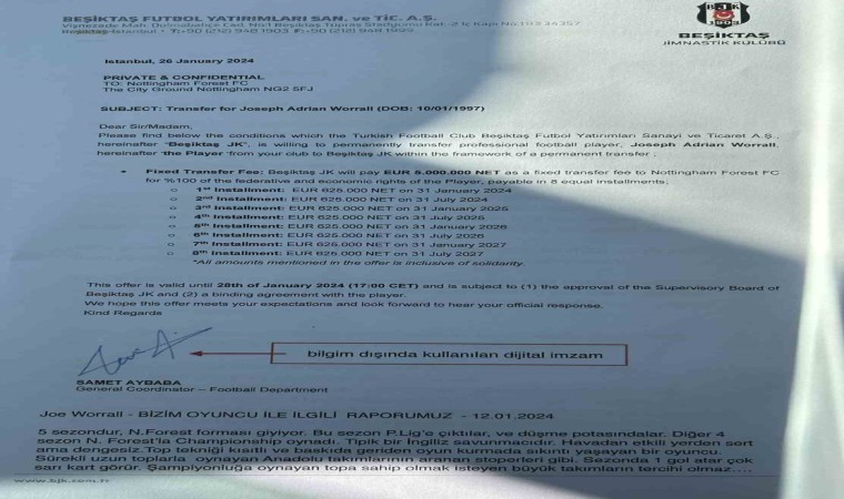Joe Worrall’ın transfer süreciyle ilgili de bilgiler aktaran Aybaba, "Joe Worall için menajeri benim yardımcımı aradı ve bilgi verdi. Biz ekip olarak olumsuz rapor verdik. Hoca bu oyuncuyu ısrarla istediğini söyleyince tekrar izledik ve rapor verdik. Beşiktaş’ta oynamak için yeterli olmadığını söyledik. Menajeri beni bi gece aradı ve oyuncuyu biz önerdik, arada biz olmadan teklif vermişsiniz diye serzenişte bulundu. Başkan ile iletişime geçtim, bana bakalım dedi. Daha sonrasında oyuncudan vazgeçtiklerine dair açıklama yaptılar. Sonrasında kiralık olarak almak istenildi. Biz de tamam dedik ve transferi kiralık olarak gerçekleştirdik. Sonradan öğreniyorum ki oyuncuyu ben onaylamışım gibi elektronik yolla imzamı kullanmışlar. Bunların hepsinin belgeleri var” şeklinde konuştu.