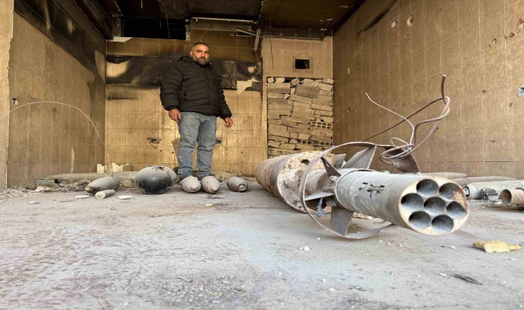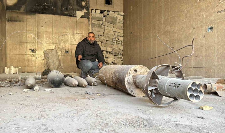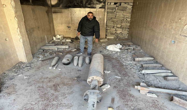 Binaların tamamının bombalandığı, el yapımı patlayıcının (EYP) dahi tuzaklandığı mahallede bulunan patlamayan bombalar ise tehlike oluşturduğu gerekçesiyle tek bir noktada toplandı. Esad rejiminin yerleşim yerlerine uçaklardan bıraktığı bombaların yanı sıra tank ve roket mühimmatları da görüntülendi.
