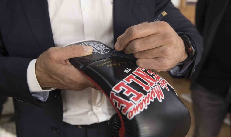 Ziyaretin ardından Arslan, Rektör Çomaklı’ya kendi imzaladığı boks eldivenlerini hediye etti.